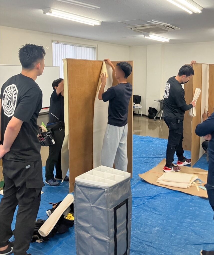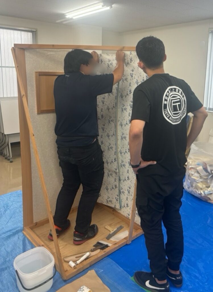 基本的な施工「パテ打ち」「無地突きつけ貼り」「柄もの相断ち貼り」をメインに