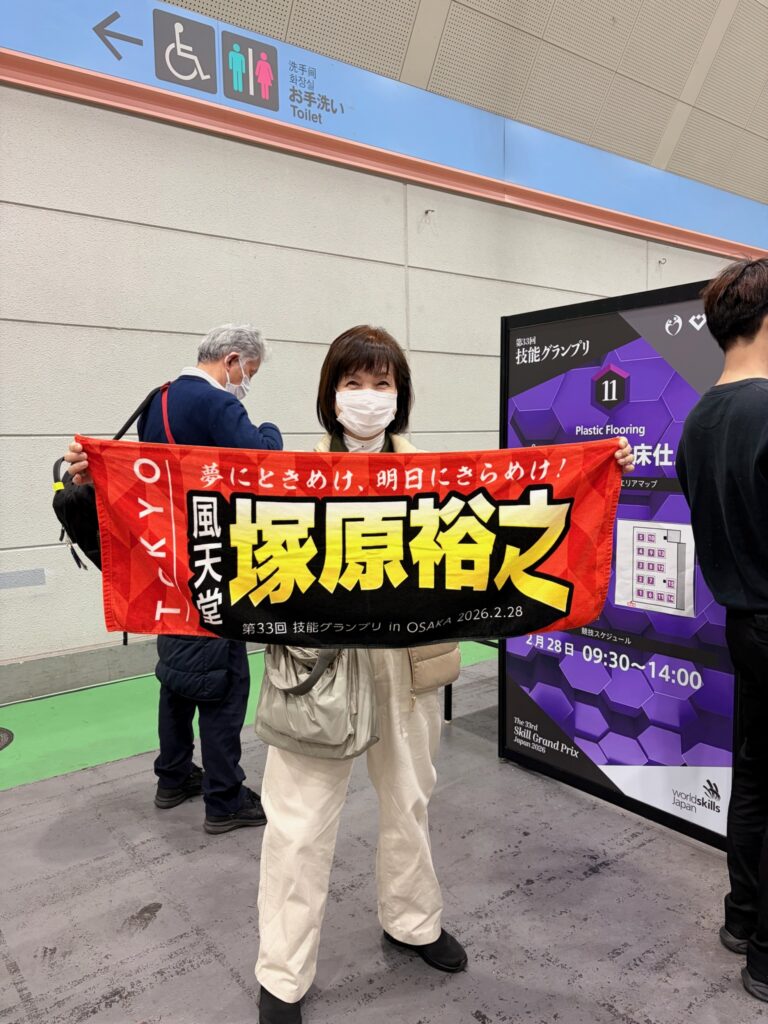 この応援タオルは、東京内装仕上技能士会の理事からのプレゼント!